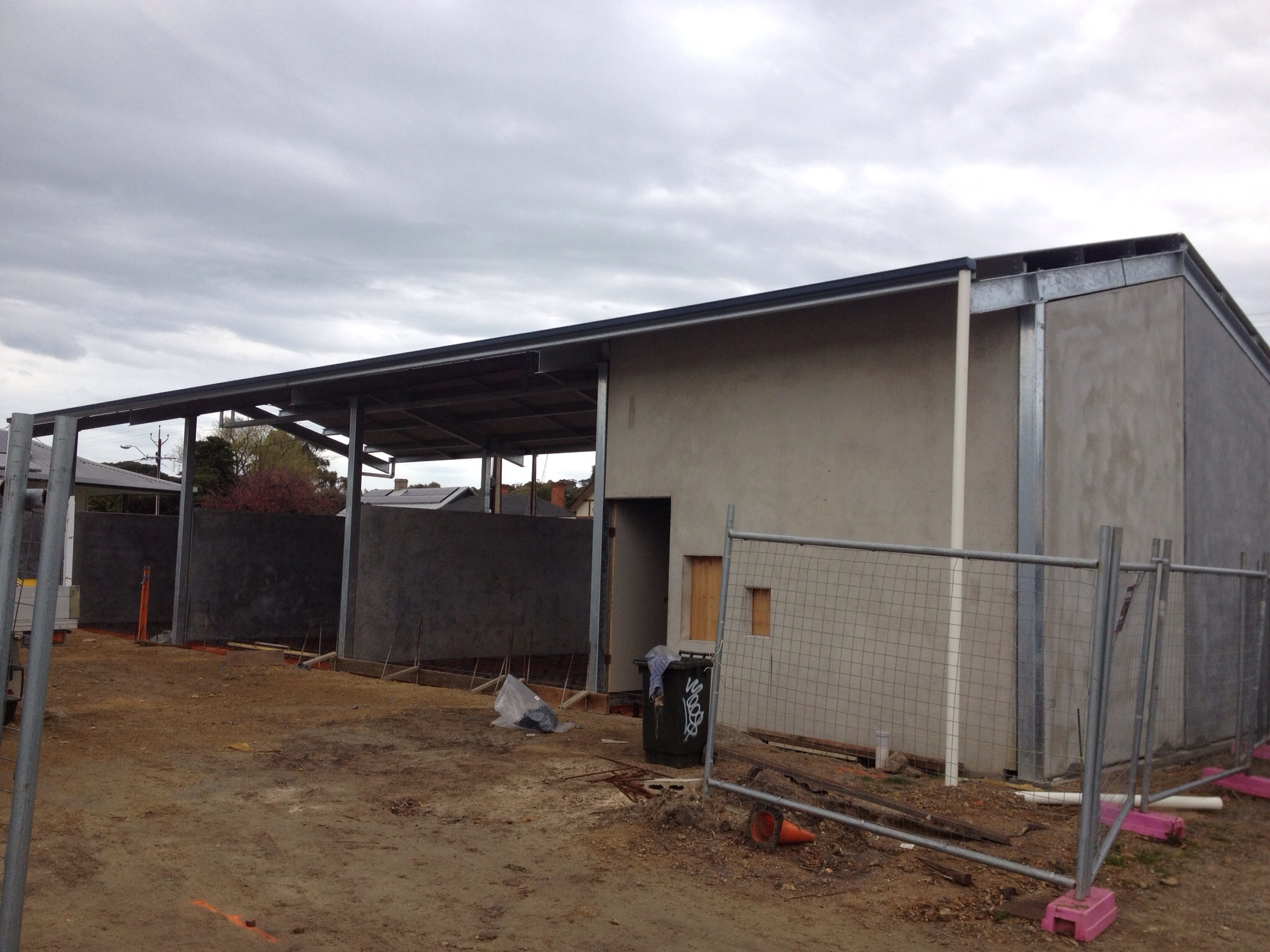 A steel framed structure with concrete precast tilt up walls.